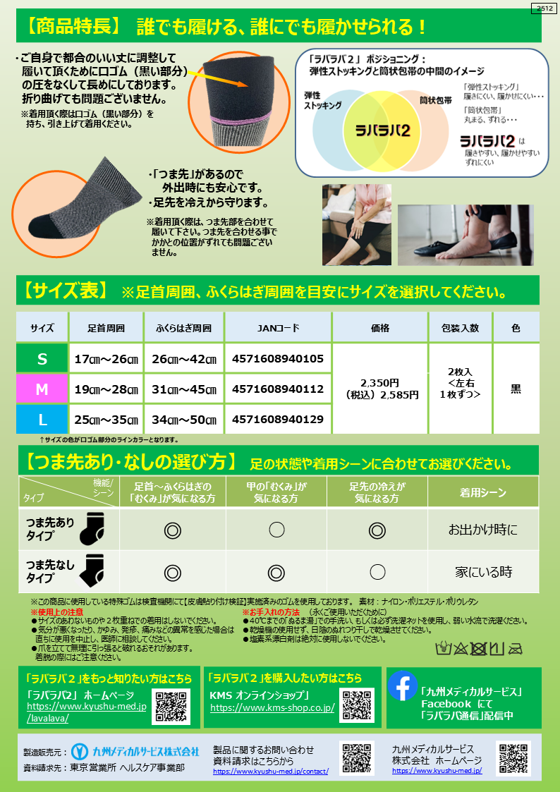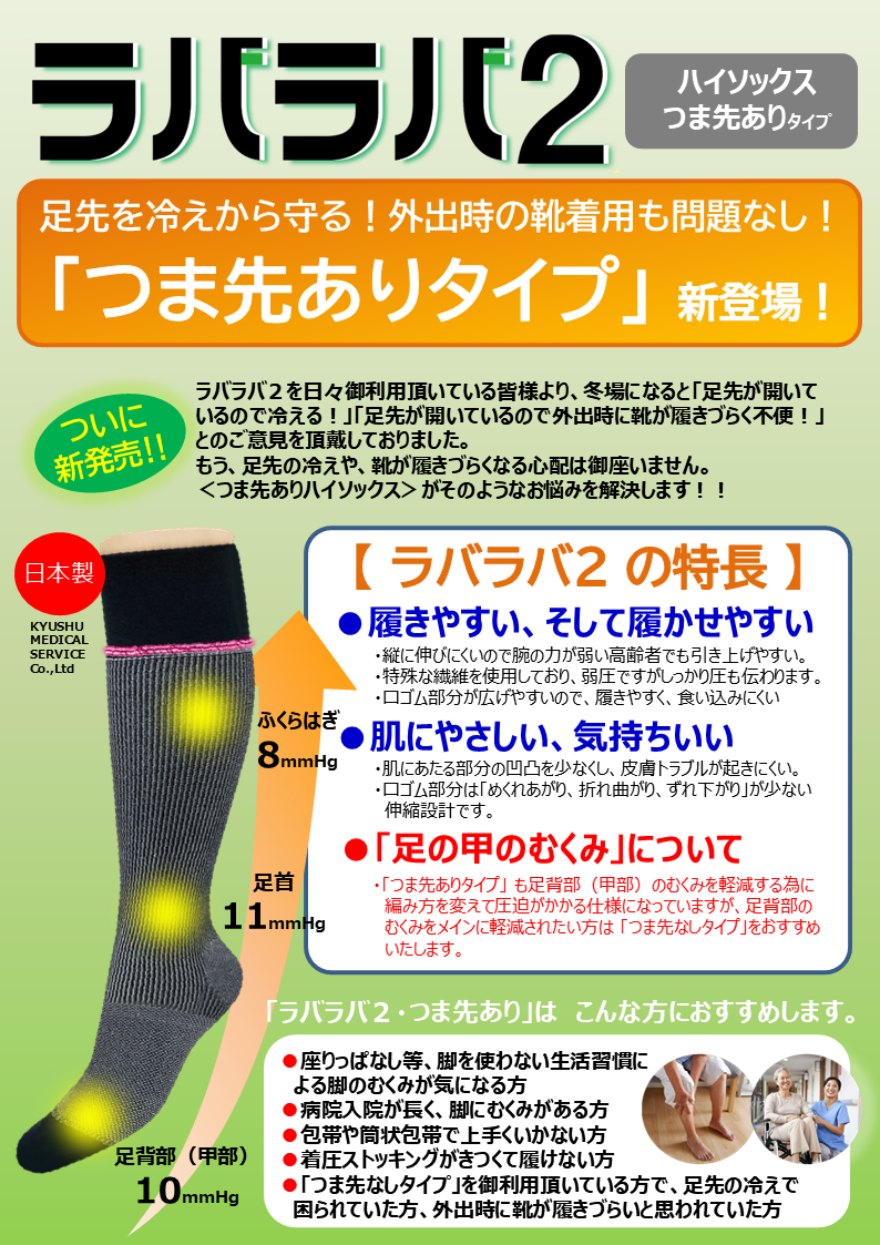 ~「ラバラバ2 ハイソックスタイプ つま先あり」は、こんな方に使って頂きたい「弱圧ハイソックス」です。~